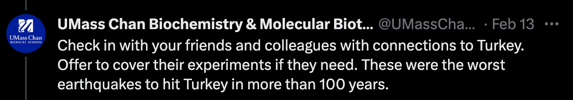 At the encouragement of our own Dr. Nese Kurt Yillmaz, we demonstrated support for Turkish scientists and their families after the 2023 earthquakes in Turkey.