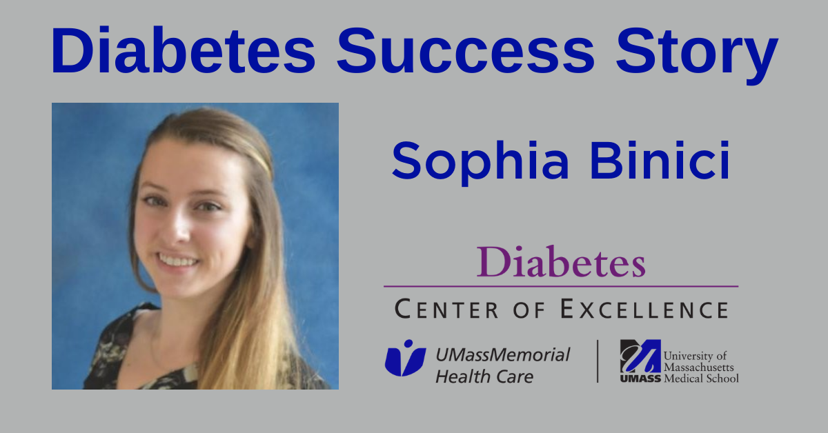 After college, Sophia began working at UMass Chan Medical School as a clinical research assistant. Her goal is to become a pediatric endocrinologist or a diabetes educator, so she can help children navigate the challenges of growing up with diabetes.