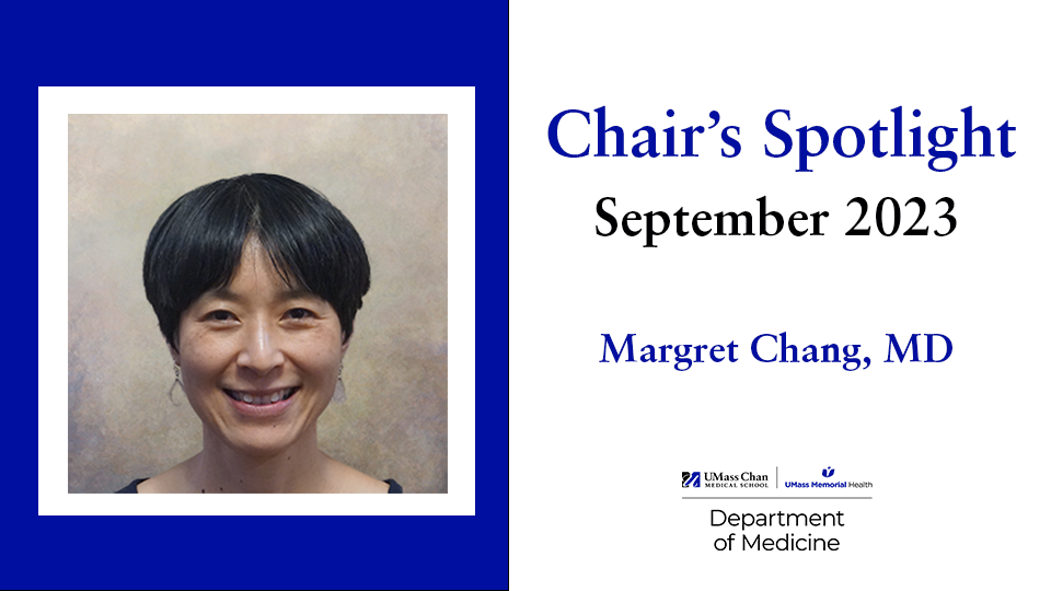 In this month’s Chair’s Spotlight, we highlight the work of Margret Chang, MD, assistant professor of medicine, attending physician, and medical director of the Office Based Addiction Treatment Program at Tri-River Family Health Center. She is also the director of the Resident Addiction Curriculum in the Internal Medicine Residency Program at UMass Chan Medical School and holds an appointment in Pediatrics. We recently had the opportunity to be in conversation with Dr. Chang about her work in the Office Based Addiction Treatment Program, her role in training residents, and her goal of making addiction treatment and management more accessible in primary care settings.