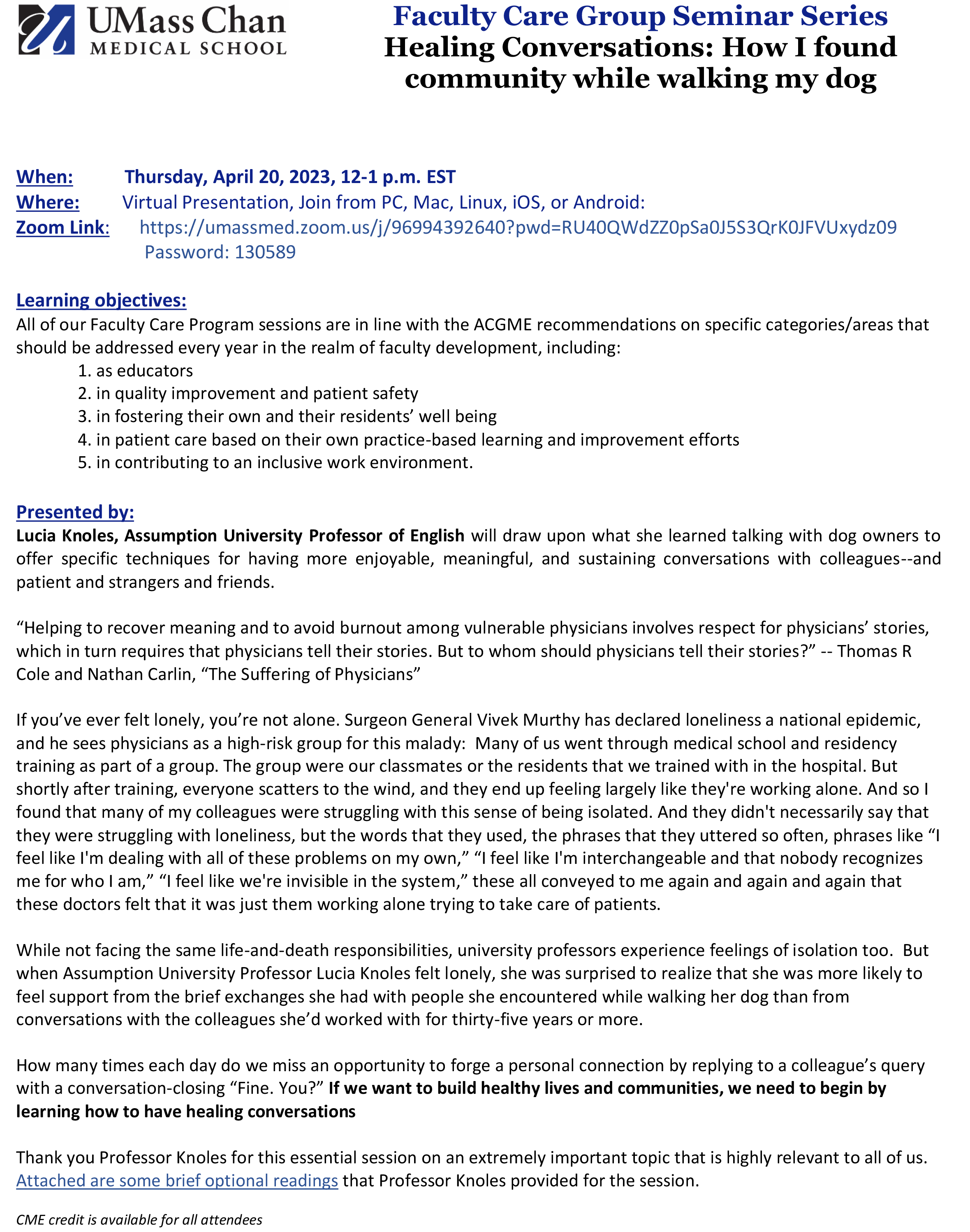 April 2023 Faculty Care Group Seminar Series