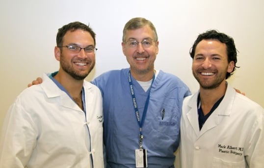 Professor of Surgery Raymond Dunn, MD (center), and plastic surgery residents Craig Rowin (left) and Mark Albert are sporting more facial hair than usual in order to raise funds to benefit the Craniofacial Clinic at the UMass Memorial Medical Children’s Center. |
