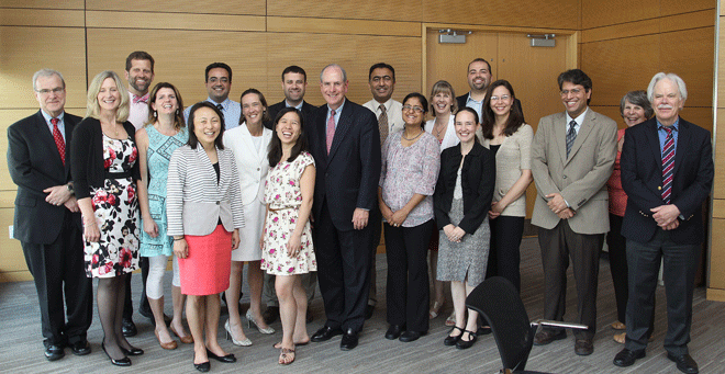 | The Junior Faculty Development Class of 2015 is pictured here with Office of Faculty Affairs and UMass Medical School senior leadership at the graduation ceremony on May 21. |