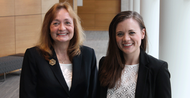 Kathryn Raymond, MSN, (left) will receive her PhD and daughter Victoria Creedon, RN, will receive her MSN from the Graduate School of Nursing at Commencement 2016. |