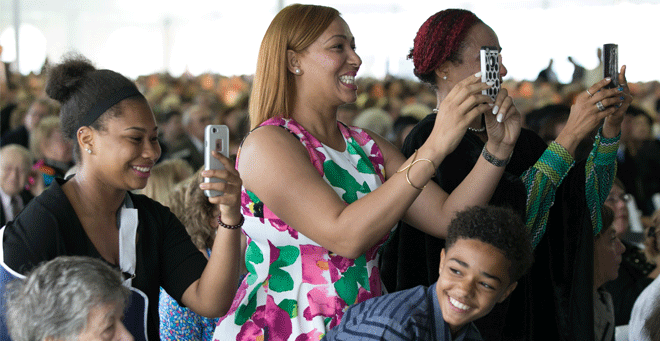 At the ceremony, Chancellor Collins presented 114 doctor of medicine degrees; one master of science in clinical investigation; 47 doctor of philosophy degrees in the biomedical sciences; five MD/PhDs; and, in nursing, 47 master of science degrees, two post-master’s certificates, eight PhDs and one doctor of nursing practice degree. Class of 2016 student speakers included Racquel Wells, MD, (School of Medicine), Aditya Venkatesh, PhD, (Graduate School of Biomedical Sciences) and Telana Fairchild, DNP, (Graduate School of Nursing).