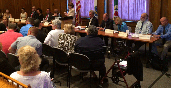 Five UMass Medical School faculty members discussed the successes and challenges in dealing with Worcester’s opioid epidemic at a City Hall forum on Monday, June 20, to highlight the need for more federal funding. More than a hundred people packed the Levi Lincoln room for the discussion, which was covered by MassLive, Worcester Telegram & Gazetteand CharterTV3.