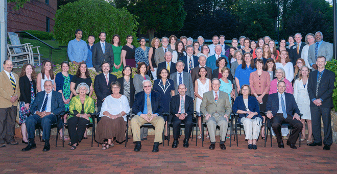 The Meyers Primary Care Institute comprises researchers and medical educators who are embedded throughout the health care delivery system. Here, the group gathers for a 20th anniversary celebration. |