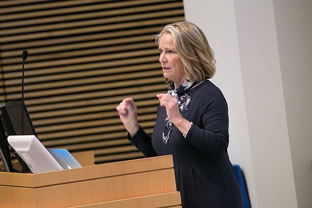She shared details of what she referred to as her convoluted career path, including her early career as a wildlife biologist in California. In that job, she helped track and monitor creatures in their natural habitat from mice in the salt marshes in the San Francisco Bay area to mountain lions in New Mexico. She said each research setback and success led to each next step.