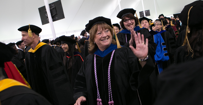 “I went from being a clinical instructor to becoming director of the nurse practitioner programs and getting involved with the interprofessional mission we have here,” she said. “I work with many School of Medicine faculty, most recently on our opioid-conscious curriculum to help fight the opioid crisis, beginning with our students as prescribers.”