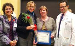 | The Medical Center’s Nurse Practitioner Council recently celebrated its 2010 Nurse Practitioner Exemplar and Leadership Award recipients. Exemplar Award winner Katharine O’Dell CNM, PhD pictured second from left of her nominator, Julia Johnson, MD, chair of ob/gyn, was recognized for her education of medical and nursing students and her patients. Also pictured is Janet McDade, NP, Leadership Award winner, and her nominator, Justin Maykel, MD, chief of colon and rectal surgery. Ms. McDade was honored for contributions to her division to teaching and research and for her council participation. | ![]() |