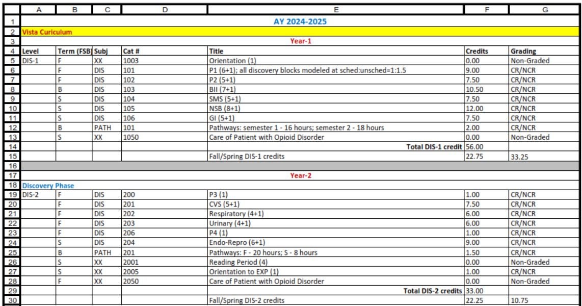 Credits AY24-25