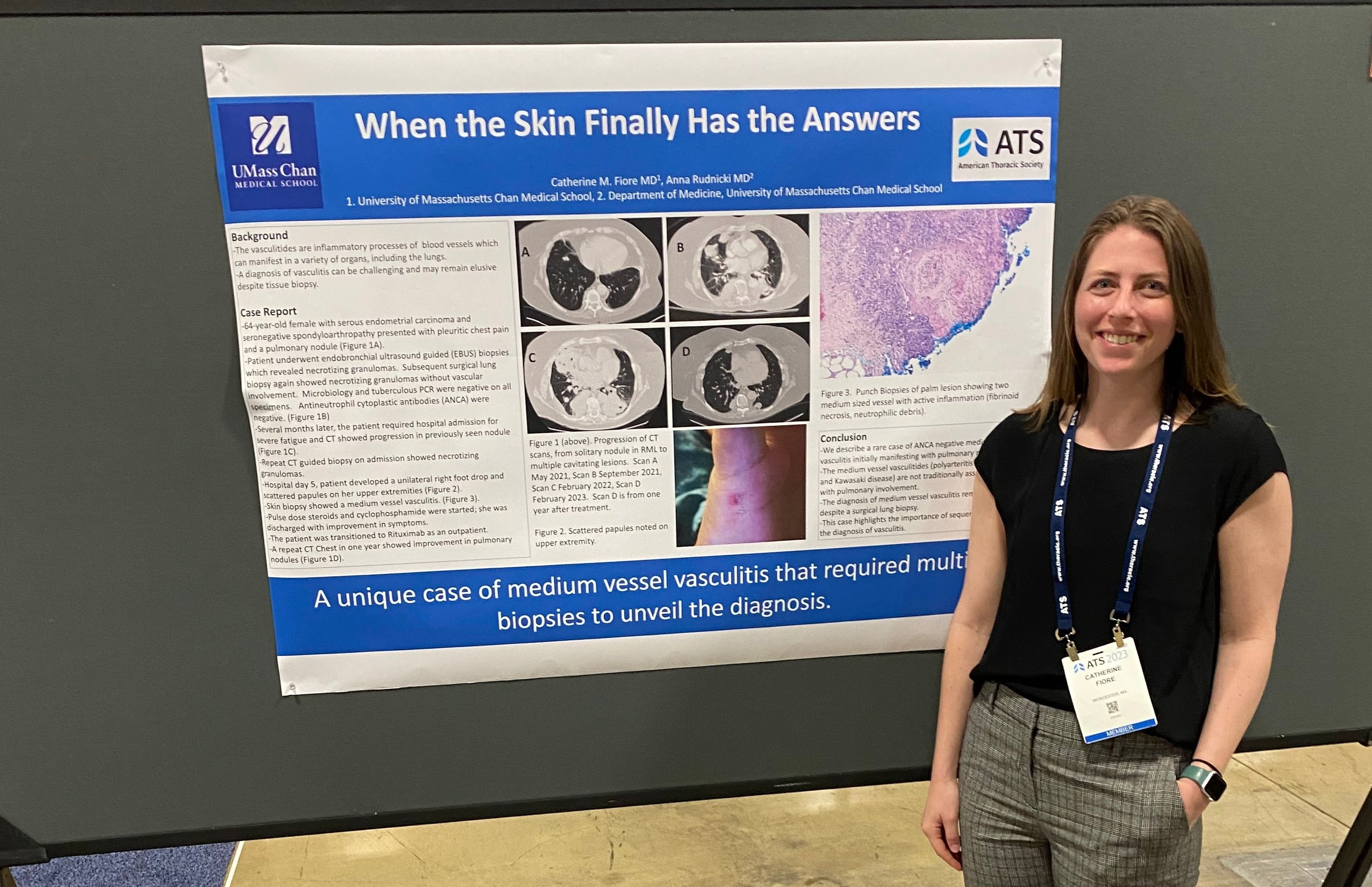 Fellows work closely with the UMass radiology teaching service and chest radiologists specifically to become proficient in interpreting CT scans and chest plain films. They will learn the fundamentals from the experts and then refine their skill in assessing various forms of interstitial lung disease and become more familiar with staging lung malignancy.